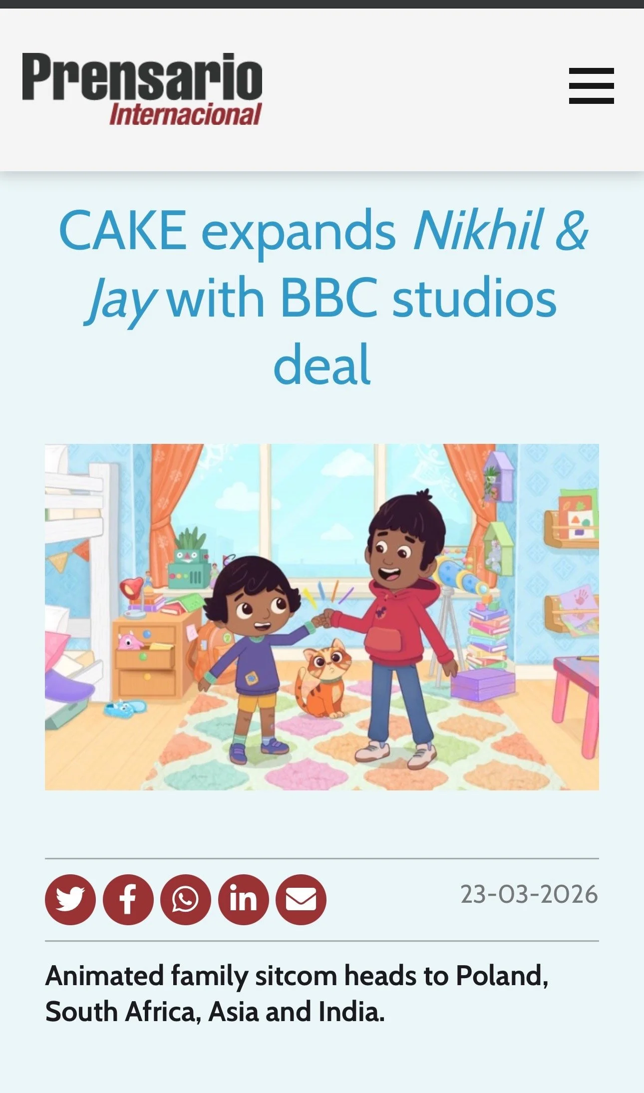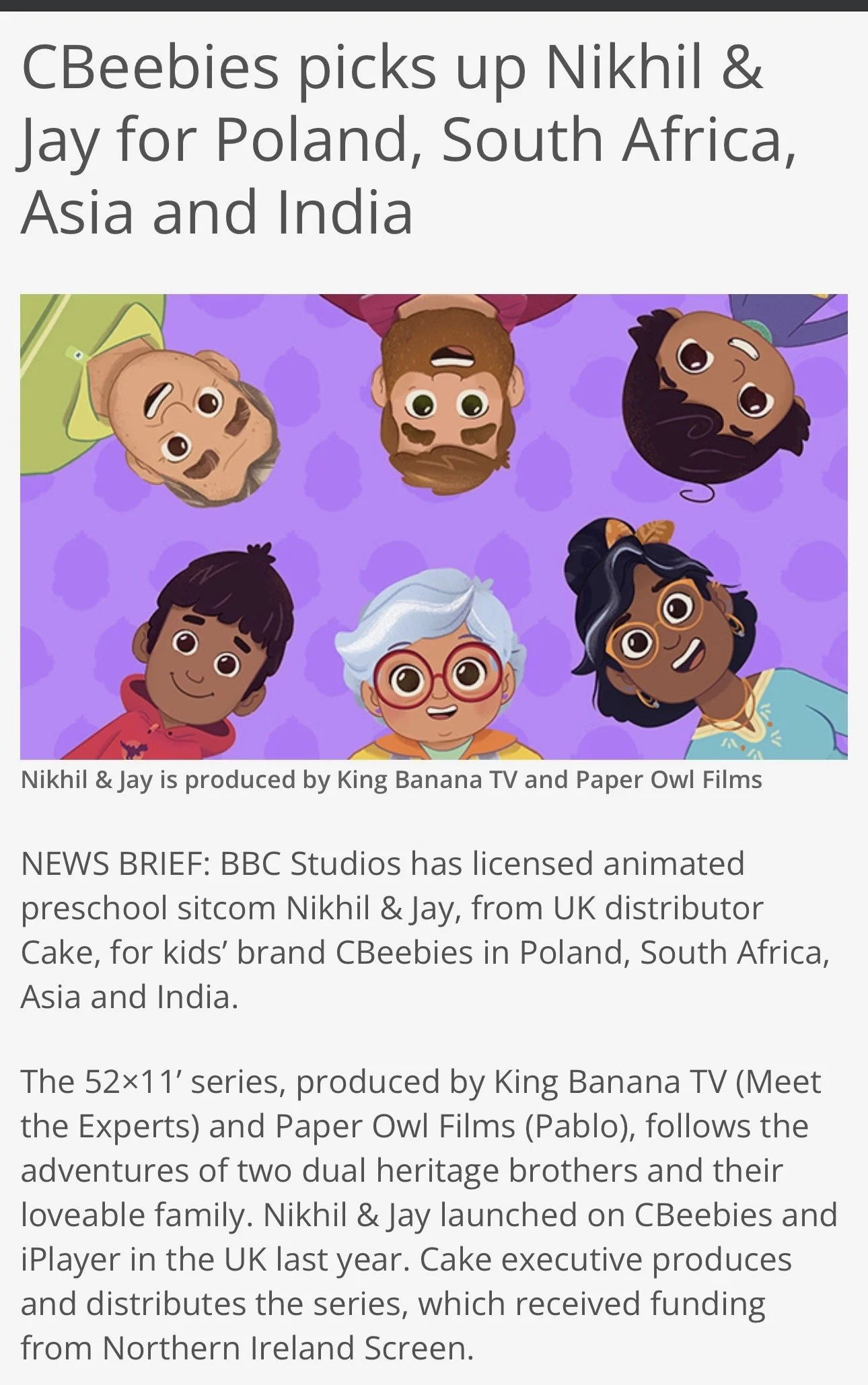 It’s official. Our amazing distributors CAKE have inked a deal with BBC Studios that will see Nikhil & Jay air on CBeebies later this year in Poland, South Africa, Asia and India. Read the full press release here.
